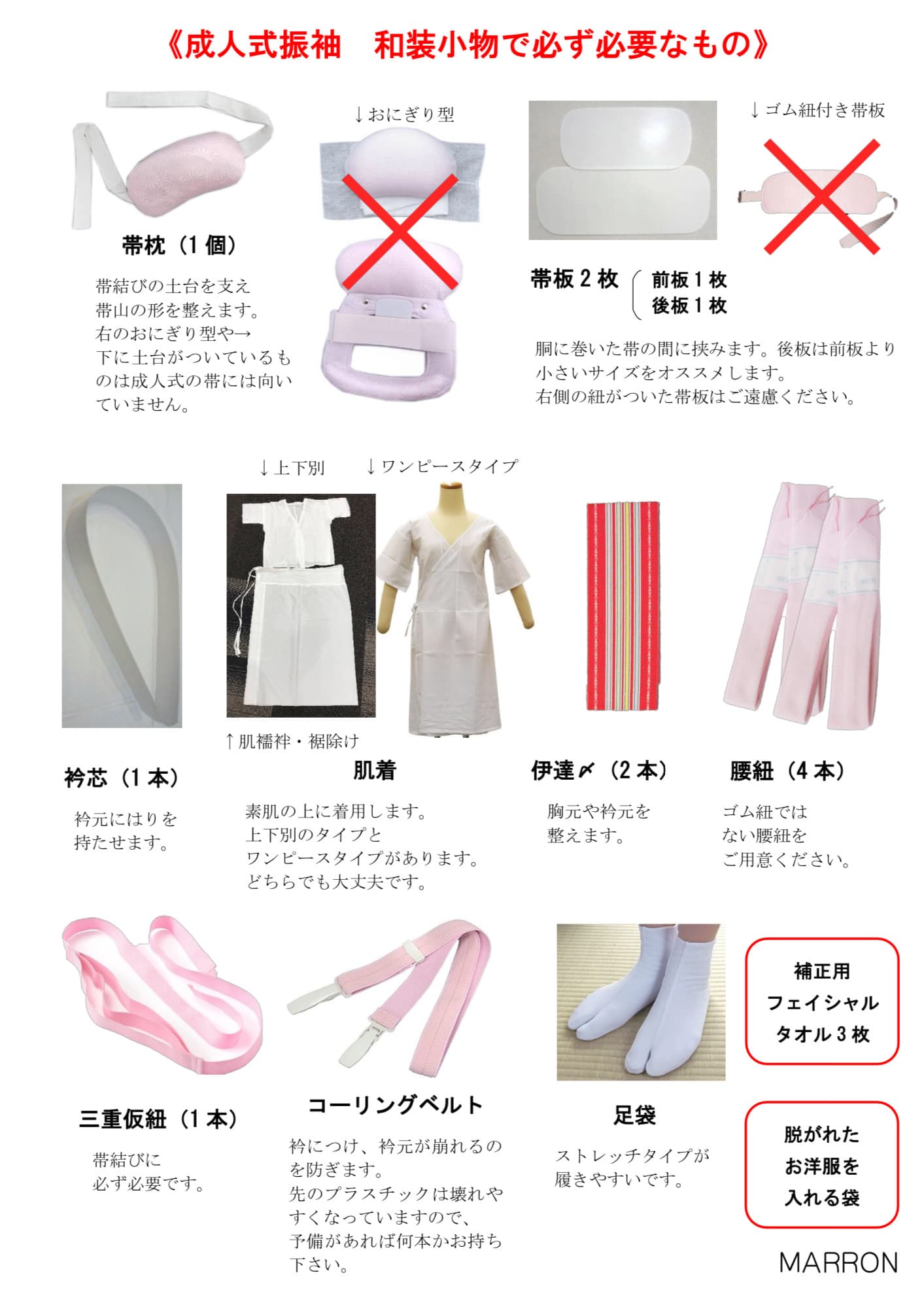 マロン美容室では事前に和装小物が揃っているかのご確認もさせていただいております。安心して成人式当日を迎えるためにも小物確認をぜひご活用ください。