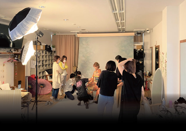 バック紙、機材もあり、成人式の撮影等、弊社で行っています。